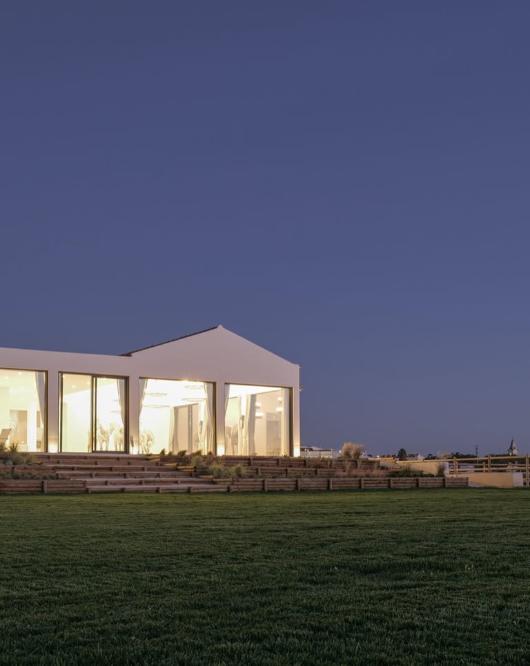 Os Stables, localizados numa propriedade icónica da região de Peniche, são o coração deste projeto: um espaço elegante, sereno e versátil que reflete o equilíbrio entre natureza, design e compromisso social.